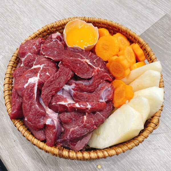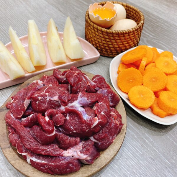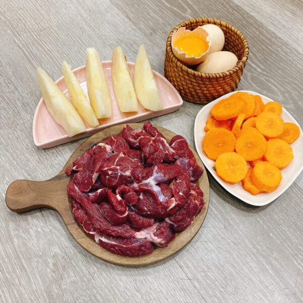 Thịt bồ, sốt kem trứng lê Hàn Quốc, nước dashi