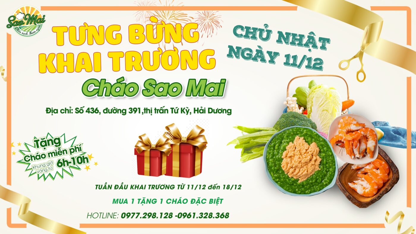 Thêm một cơ sở cháo Sao Mai khai trương tại địa chỉ: Số 436, đường 391, thị trấn Tứ Kỳ, Hải Dương